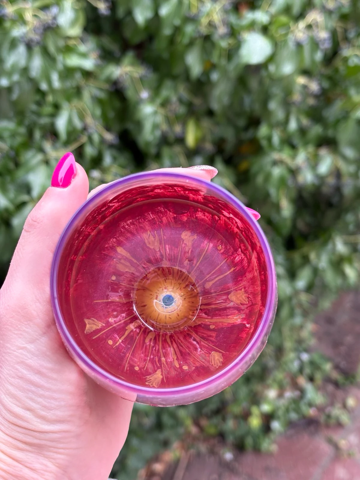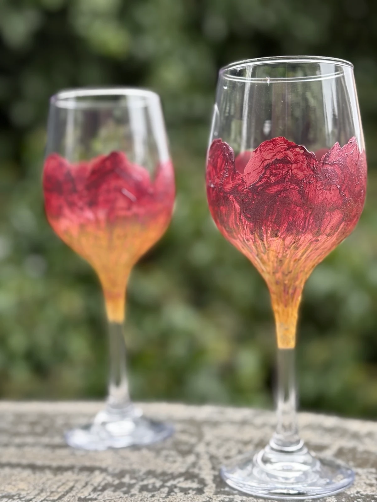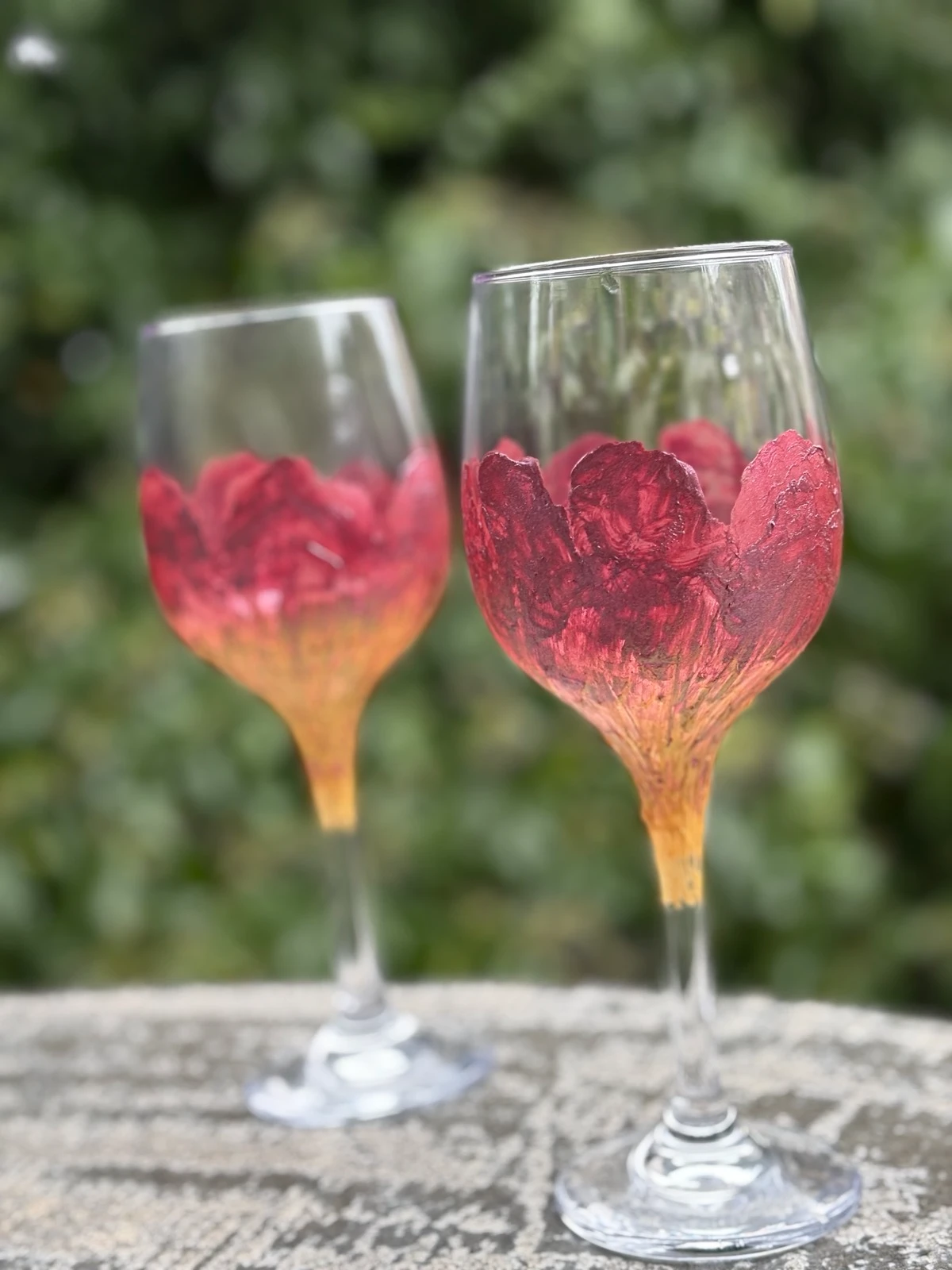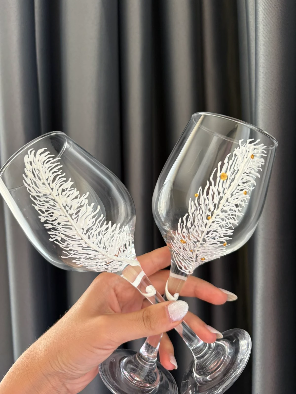 Чашите са изработени със специална серия боя и са много артистични с релефна повърхност и голд контур по стъблата. Придобиват формата на цъфнало цвете от вътрешната страна и са много интересни и изненадващи.