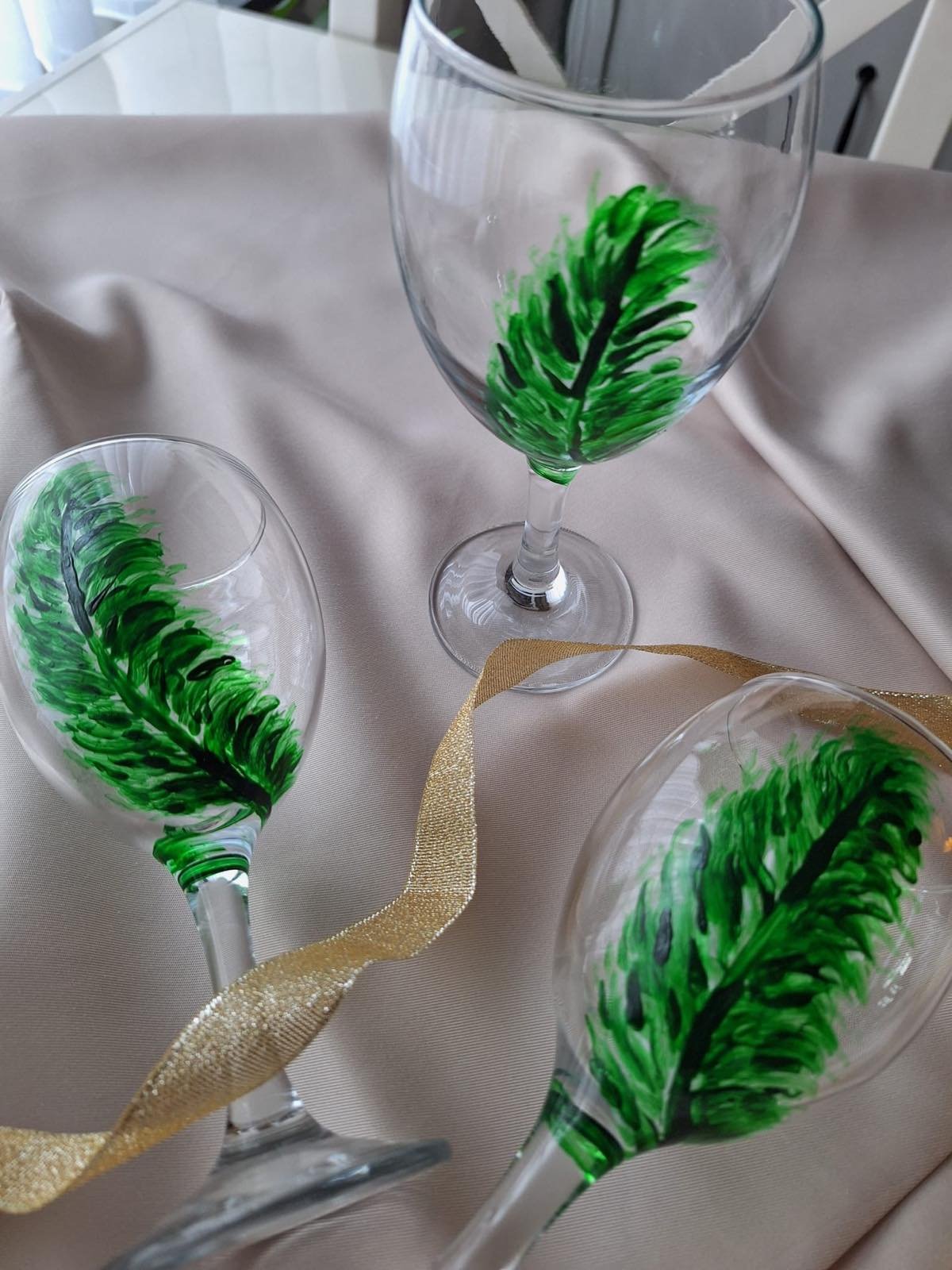 Всяка чаша е изрисувана на ръка със специални бои за стъкло и запечатана чрез изпичане във фурна на